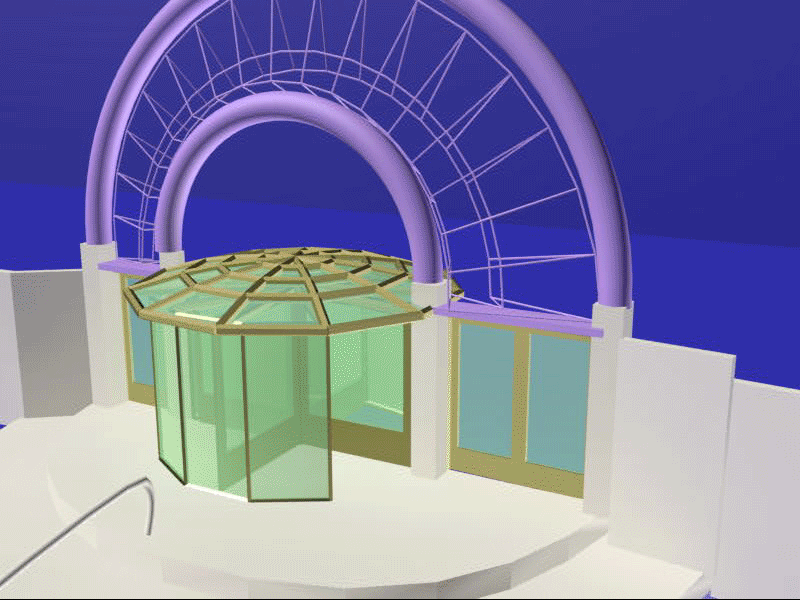 Continue the Autodesk tutorial Modeling a Revolving Door. After completing the section "Merging Geometry," render an avi video file and submit as Last_First_RevolvingDoorComplete.avi.